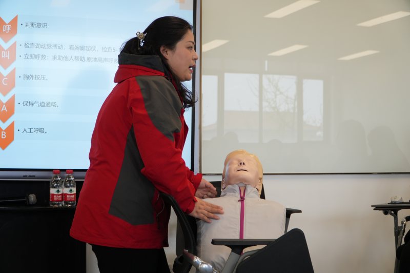 “手把手”教學模式下,大家個個爭先恐后,積極投入到各項急救技能的學習中。有人躍躍欲試地學習心肺復蘇(CPR)的正確姿勢與注意要點,有人認真學習著如何快速有效地處理氣道異物梗阻。在笑聲與掌聲中,學習氛圍變得越來越熱烈,仿佛每個人都沉浸在一場急救技能的“洗禮”中。